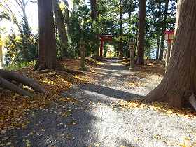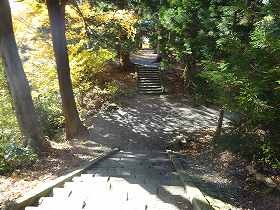 さて、鳥居の所から、石段を上がったところが3郭である。城というよりも参道そのものだが、南側には低い土塁が見られる。