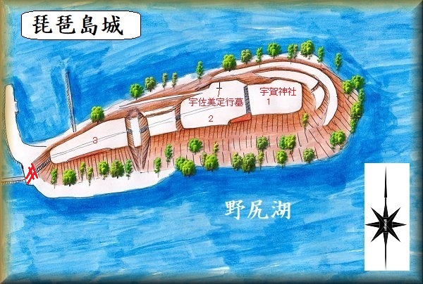 これだけである。たいした規模の城ではないが、それでも周囲を湖に囲まれていること自体が、城としての防御性を高めている。島をそのまま城郭に取り立てるというのは、なかなか優れた発想であったと言える。