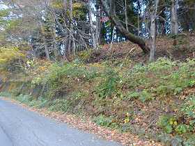 | 1郭北側下の腰曲輪。 | 北側下の道路から城塁を見たところ。 |