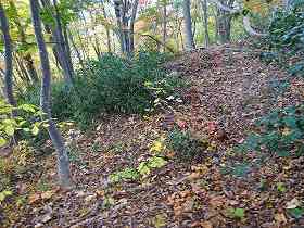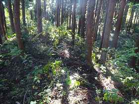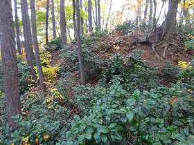 | 北側の切通し。左側が城址である。 | 3郭の城塁。 |