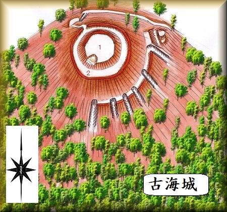 古海城は古海の集落の南側にそびえている比高130mほどの山頂部に築かれていた。