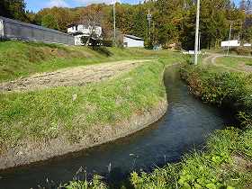 | 南東に残る土塁。 | 南側を流れる芋川用水。 |