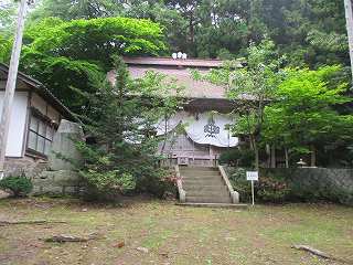 | 北方から遠望する安坂城。ここからの比高は200mほどある。 | 山麓にある安坂神社。この右手の奥から登城道が付けられている。 |