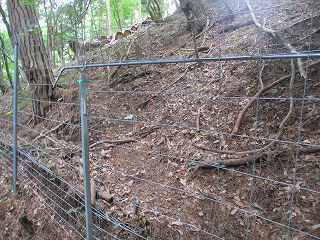 鉄塔の所から山道は分かりにくいのだが、斜面を斜めに沿うようにして付けられている。これを登って行ったところが6郭である。