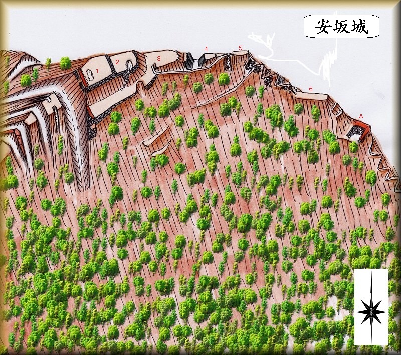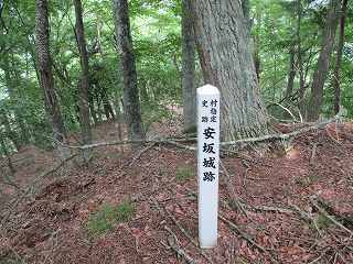 | 安坂城の城主は安藤氏であったと伝えられている。 天正年間、安藤加賀守の時に落城したと言われているが、詳しい経緯は不明である。安藤氏の詳細も不明だが、近くには青柳城があることから、安藤氏は青柳氏の家臣で、安坂城は青柳城の支城であったと考えるのが妥当なところである。 |