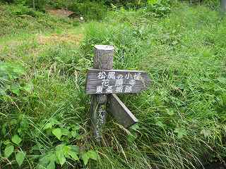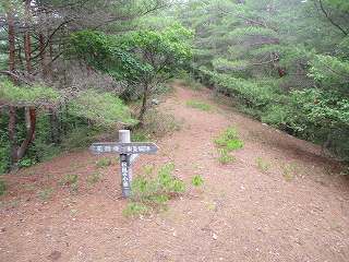 | すると遊歩道の案内板が見えてきた。車はこの手前辺りに1台だけ停めて置けるスペースがある。 | 遊歩道を進んで行くと尾根部分に出た。まるで堀切のような地形である。 |