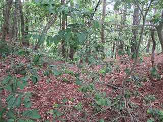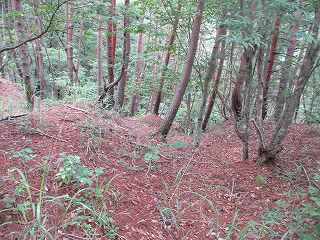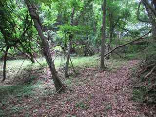 | 4郭内部。左側は3郭城塁。 | その先にあった尾根道の分岐点。 |
