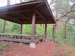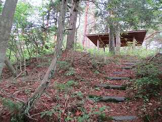 | 4郭に戻って行く。遊歩道によって堀切が破壊されているようだ。 | 再び1郭の祠と東屋。 |