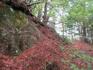 そこから先は道がよく分からず急斜面直登するようになっている。とはいえヤブはまったくないので、好きなように進んで行けばよい。道があったとしても直登するのに変わりはないので、道がなくても結局は同じことである。