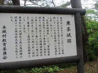 | 東条城の城主は東条氏であったという。東条氏は青柳氏の家臣であり、鎌倉時代の弘長元年(1261)に築いたものだと伝えられる。なるほど古い時代の山城だと言われれば確かにしっくりくる。 東条氏は天正年間に小笠原氏と戦って敗れているというので、これは天正10年の小笠原氏による侵攻の際の話なのであろう。ただし、天正年間の山城としては、とても物足りないものである。 後に東条氏は姓を一之瀬氏と改め、落城時は一之瀬氏と名乗っていたという説もある。 |