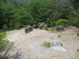 | 3郭入口。巨石群がある。 | 3郭から下の斜面を見たところ。 |