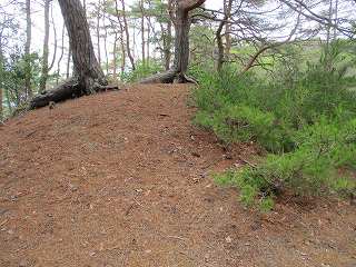 | 三重堀切の手前のピーク。 | 三重堀切の間の土塁。高いものではない。 |