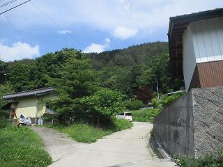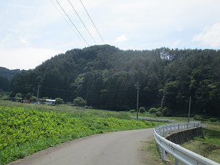 | 尾根続きの部分。ちょうど舗装が終わる辺りである。車を停められる余白もあるので、ここから城内に進んで行く。 | 城のある尾根。 |