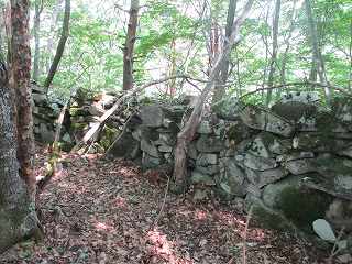 | 見事な石積み。知らなければ「長野にも弓形砲座があった!」と紹介してしまいそう・・・。 | 石積みの虎口部分。 |