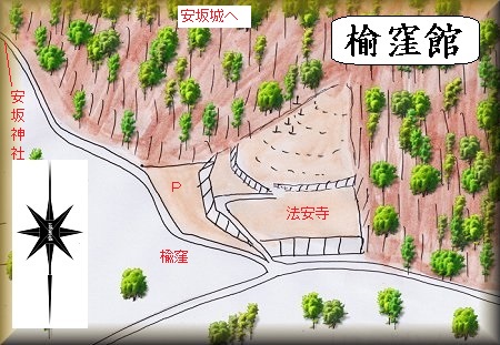 安坂城の山麓の谷戸部にある法安寺のある所が楡窪館の跡であったという。