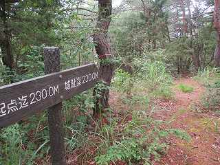 そして階段を登って行く。当初はひたすら階段を登って行くばかりなのでけっこうきつい。そうして比高60mほど登って行くと、次には平坦な尾根に差し掛かった。ここから先は歩きやすい道となっている。途中に「西条城まで230m」などと書かれた看板が立てられている。
