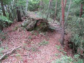 | 2本目の堀切。 | 3本目の堀切の先には岩がそびえている。城域はここまで。 |