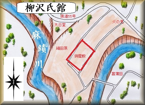 現状では一面の水田地帯と化してしまっているが、その中央部分に「御屋敷」の地名が残されている。道路によって囲まれたこの60m四方ほどの区画が、柳沢氏館の跡であったと思われる。