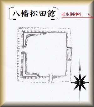 八幡松田館は、県道77号線を挟んで、武水別神社(八幡神社)の西100mほどのところにあった。八幡小学校の東200mのところで、一軒の民家の敷地となっている。