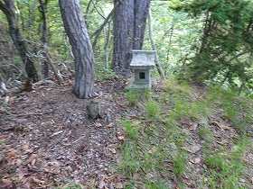 進んでいくと、若干の平場があり、冠着山権現の祠がある3郭に到達する。といっても、明確な切岸や堀切は存在せず、簡単に削平しただけのスペース、といった程度のものである。