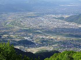 | 山頂から千曲市街を遠望したところ。非常に眺望が利いている。 | 1郭にある冠着神社。 |