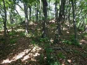 山稜の尾根部分を利用した城郭なので、後はセオリー通り、尾根に沿って堀切が掘られ、2郭、3郭と続いていく。どの堀切もしっかりと構築されたものであり、堀切好きの城マニアだったら、十分に満足できる城郭である。