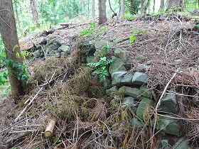 | 土塁に囲まれた2の部分。 | 3にある冠着権現の祠。 |