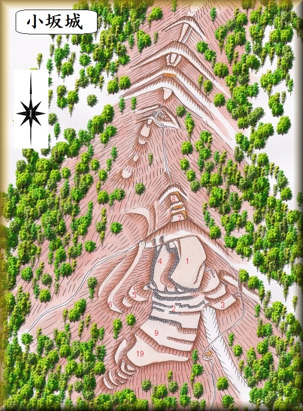 小坂城は1郭周囲の石垣もさることながら、背後の山稜に掘られた大規模な連続堀切が見どころの城郭である。堀切マニアには必見の城というべきものである。