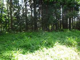 | 1郭内部。東側に土塁があり、2郭側の土塁脇には虎口も見られる。 | 2郭との間の堀切。 |