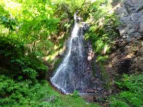 そこから案内表示に従って、川沿いに登っていく。すぐに滝の音が聞こえてくるので「これが不動の滝か」と思ってしまうのだが、それは砂防ダムから落ちている水であった。もっともこれはこれで人口の滝であるともいえるが。