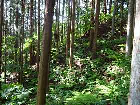 | 1郭背後の大堀切。深さ10m近くある。 | その先にも3本の堀切が連続する。 |