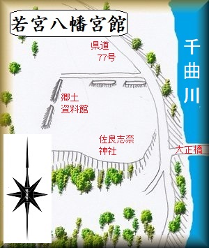 千曲川に突き出した比高20mの台地先端部近くに佐良志奈神社があるが、その辺りに若宮八幡宮館があったという。大正橋の西詰に当たる場所である。