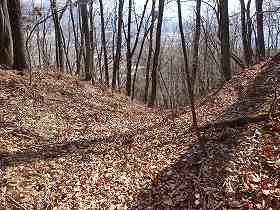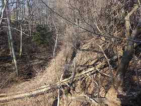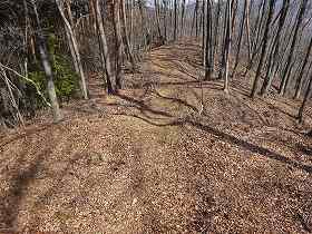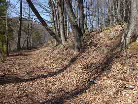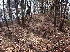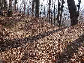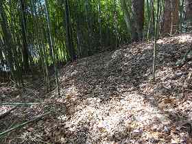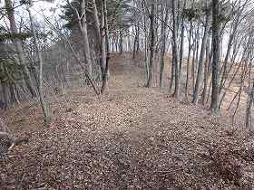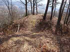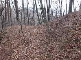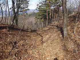 | 4郭との間の堀切。 | この先の尾根にも数本の小規模な堀切が見られる。 |