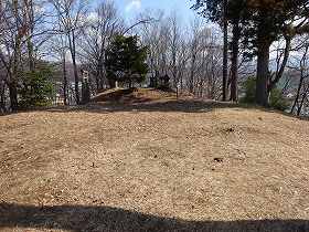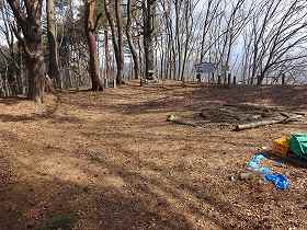 | 山頂部分。それなりの平場はあるが、切岸加工はされていない。 | 南側の保育園方向を見たところ。台地上はかなり広くなっている。 |