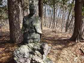 3本目の堀切の先が3郭、ここには貴族の石像が置かれていた。山城に貴族の石像があるとは実に珍しいものであるが、いったいどういった由来があるのであろうか。