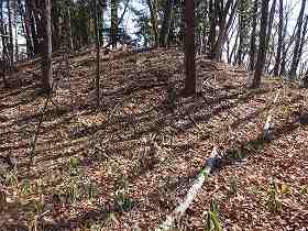 先端部分は、なだらかに傾斜していたようで、ここには数段の腰曲輪を造成することで、防御性を高めている。
