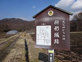 案内板には「枡形城跡 武田信玄ゆかりの城」と書かれている。この辺りは城址標柱が充実しているのだが、やはり武田信玄は地元では人気があり、武田氏に関連した遺跡については親切に案内板を設置してくれているようである。