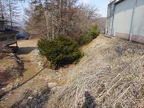| 先端の城塁。滝の湯川に面した断崖となっている。 | 先端下の腰曲輪。 |