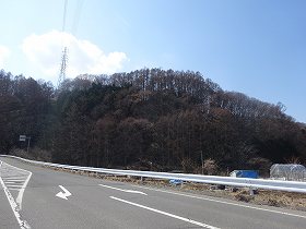 | 南側から遠望する干沢城。 | 南側から貯水施設に向かう林道の途中に見える長林砦の堀切。 |