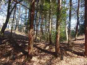 | 主郭から2郭方向を見る。ヤブがなく、見通しがよいので気持ちいい! | 1郭下の小郭。 |