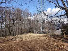 | 1郭に倒れていた城址標柱と案内板。 | 2郭には鉄塔が建てられている。 |