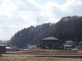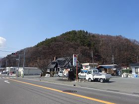 齢松山城は、国道152号線の「本町古屋敷」という信号のすぐ北側にそびえる比高60mほどの城山に築かれていた。城山への登り口は南側のこの辺りにある。ただし、駐車場がない。車はどこか道路の余白を探して停めさせてもらうしかない。