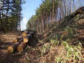 車で林道を走って行くと、やがて右手に長林砦の堀切が見えてきた。長林砦は実に小規模なものであるが、干沢城の南側の尾根続きを監視するためのものであったろう。