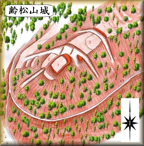 齢松山城は、それほど規模の大きな山城ではないが、それなりの構造物はそろっており、物見台や狼煙台として機能していた山城ではなかったかと推定される城郭である。