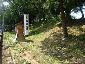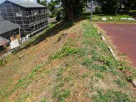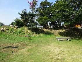 | 東側の城塁と標柱。 | 内部から西側の土壇を見たところ。 |