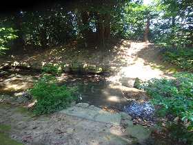 | 南側の城塁と堀。 | 南側に落ちていく堀。 |