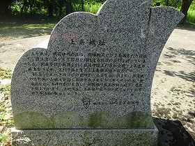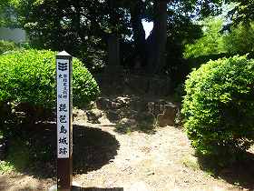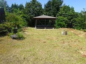 | 実城に建てられている東屋。 | その脇にある城址碑。 |