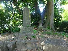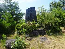 | 南東側の城址入口。車で上がって行ける。 | 変わった形の城址碑。 |