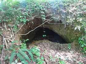| 2郭側面部にある穴。何のためのものであろうか。 | 2郭内部。標柱が立てかけてある。手書きで「二ノ丸跡」と書かれていた。 |