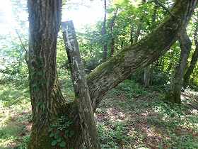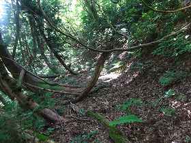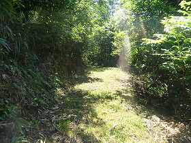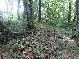 | その先はひどいヤブである。 | 実城の城塁。 |